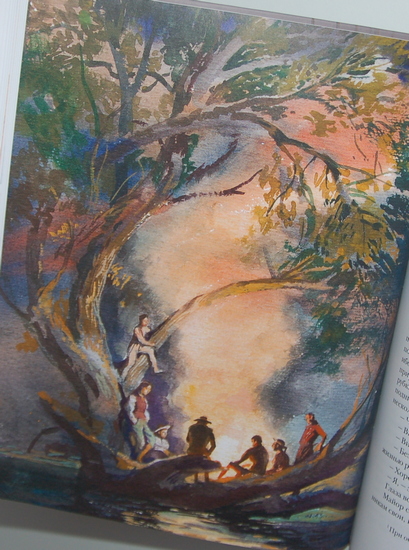 Вторым был Том Сойер. Очень уж он большой любитель то клад ночью поискать, то бородавки на кладбище повыводить, то другие дела свои порешать. Этот сорванец у нас в иллюстрациях Германа Мазурина.