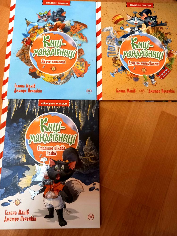 Хвастик (показываем книжные покупки)Хочется похвастаться. Купила я дочке в продуктовой сети магазинов здоровские 3 книжки из серии "Кошки-путешественницы". Книги украинского автора, на украинском языке. В серию входит 4 книги, четвёртая как дополнительная. Но в моем магазине были только первые три, поэтому четвертую купила бабушка и она дожидается нас у бабушки.