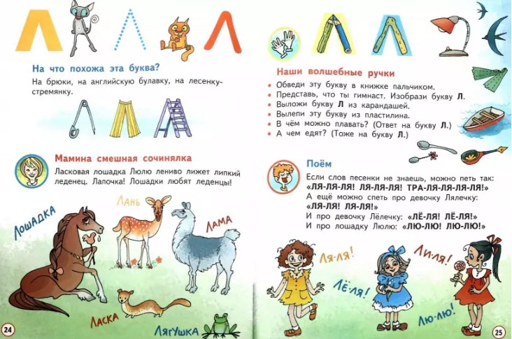 Это нестандартная игровая азбука в коллажной технике, где для каждой буквы найдётся предмет, повторяющий её форму. Стихи на запоминание звука и, конечно, много игровых ситуаций с дырками-вырубками. Окно дома превратится в воздушного змея, ватрушка - в снеговика, а зеркало - в табуретку. И знакомство с алфавитом станет для малыша увлекательным приключением. А на последних разворотах книжки малыши и родители могут самостоятельно превратить буквы в образы с помощью карандашей, цветной бумаги или фломастеров.