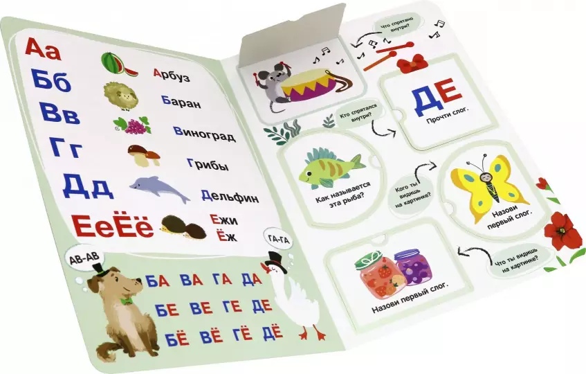 Эта книжка в игровой форме познакомит вашего малыша с буквами и слогами. Маленькому ученику обязательно понравится открывать окошки, и отгадывать названия предметов, спрятанных за ними по первым буквам или слогам слов. Скорее начинайте занятия - это будет невероятно весело!