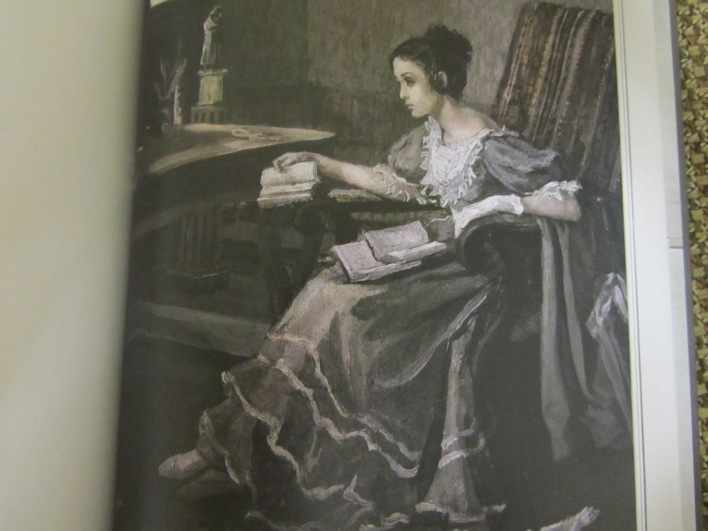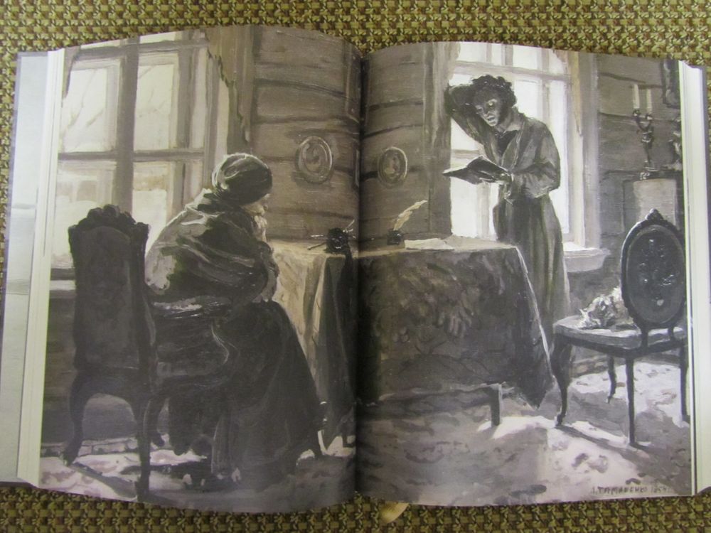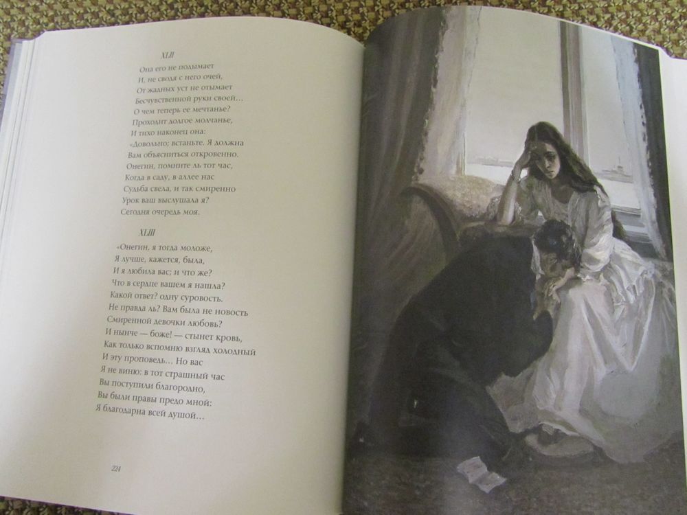 Эту книгу я уже не на распродаже покупала, а практически по полной цене,просто не смогла пройти мимо такой красоты! Иллюстрации Тимошенко на мой взгляд больше всего подходят к героям книги и Татьяне и самому Онегину. Практически так я себе и представляла их. Книга увеличенного формата, объемная, поэтому читать конечно только дома ( я вот в продаже видела уменьшенный формат, если бы сейчас покупала купила бы его наверное). Я отношусь к тем, кому с детства это произведение понравилось, и линия главных героев и второстепенных. Это же классика, но отношения между людьми не меняется, поэтому это произведение будет актуально и понятно всегда. И кстати в книге есть примечания и комментарии, которые как бы дополняют общую картину представления читателя о той эпохи, в которой происходило действие романа.