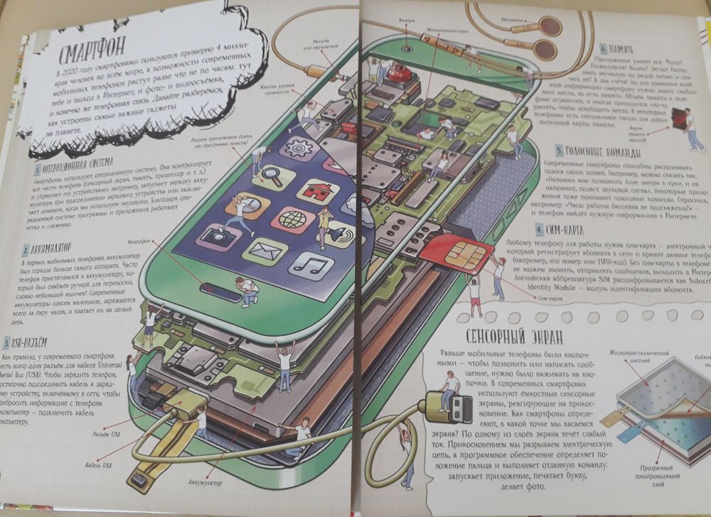 Сына в первую очередь заинтересовал смартфон. Кстати, описано вполне доступно. Хотя книга в целом рекомендована на средний школьный возраст.