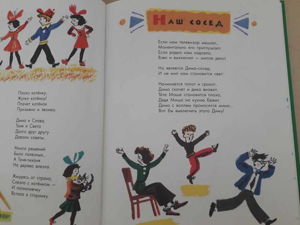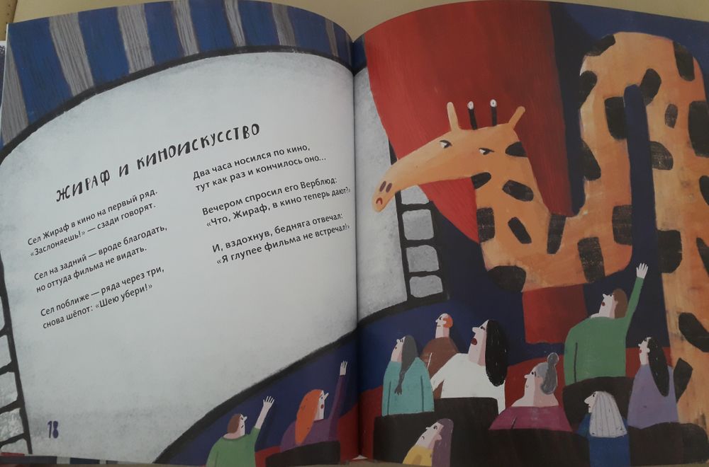 я купила сразу, не раздумывая. Знаю, что недавно была скидка на сборник. Не проходите мимо! Пусть иллюстрации очень на любителя, стихи превосходные! Перечитывали не один раз, в этот раз Санька читал вслух бабушке. Любит про жирафа в кино (видимо, скоро сам станет подобным жирафом)