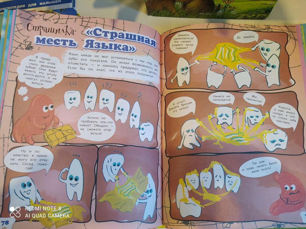 " Детям про зубки" читает до сих пор. Читает немного, энциклопедия толстенная.