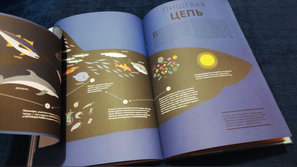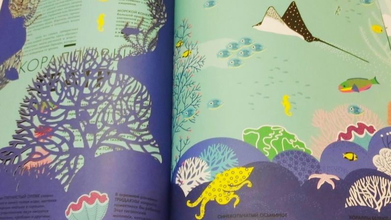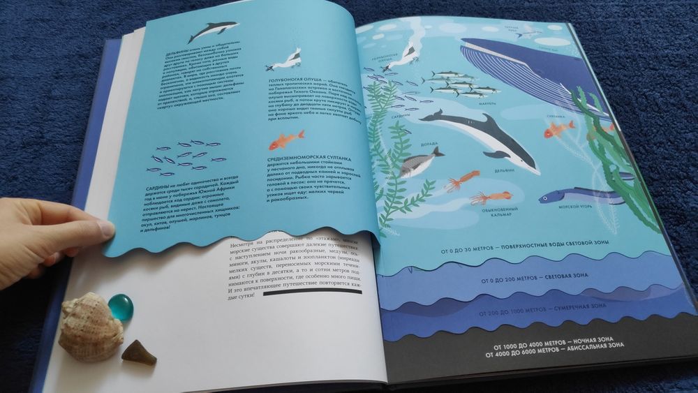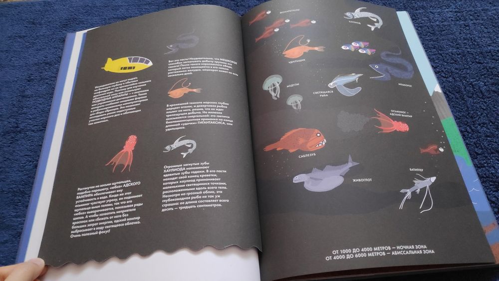 Конечно понравились цветные странички с волнистым обрезом, показывающие обитателей разных глубин.