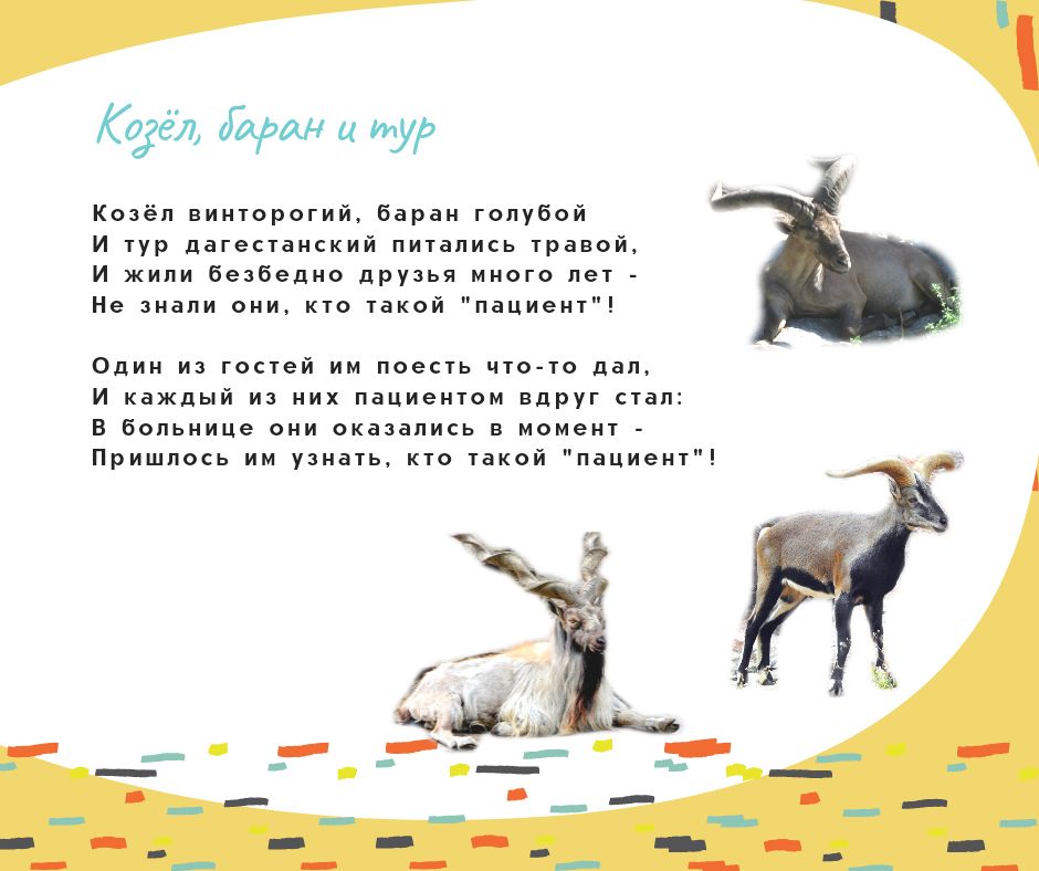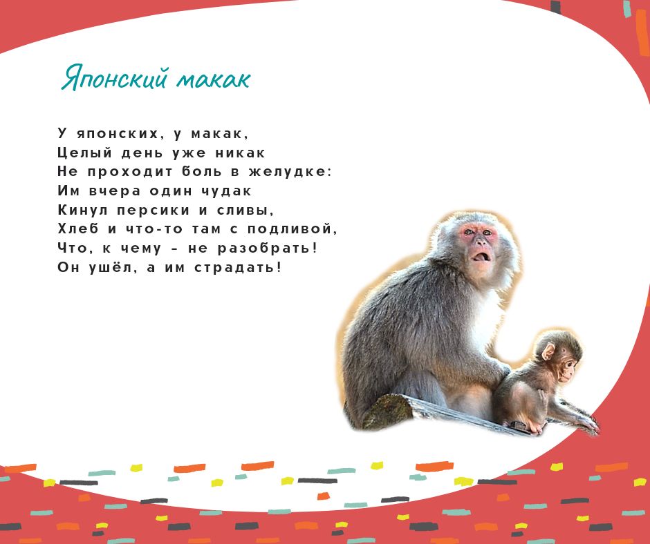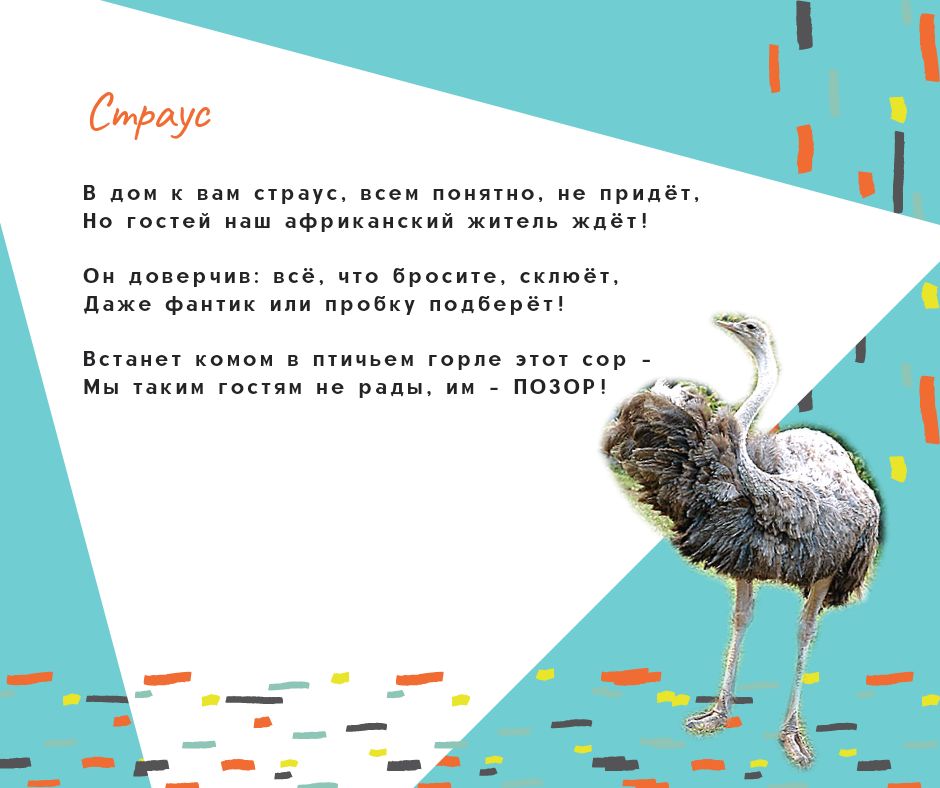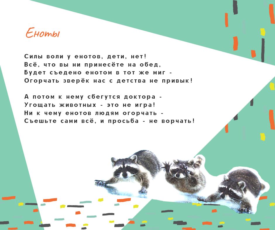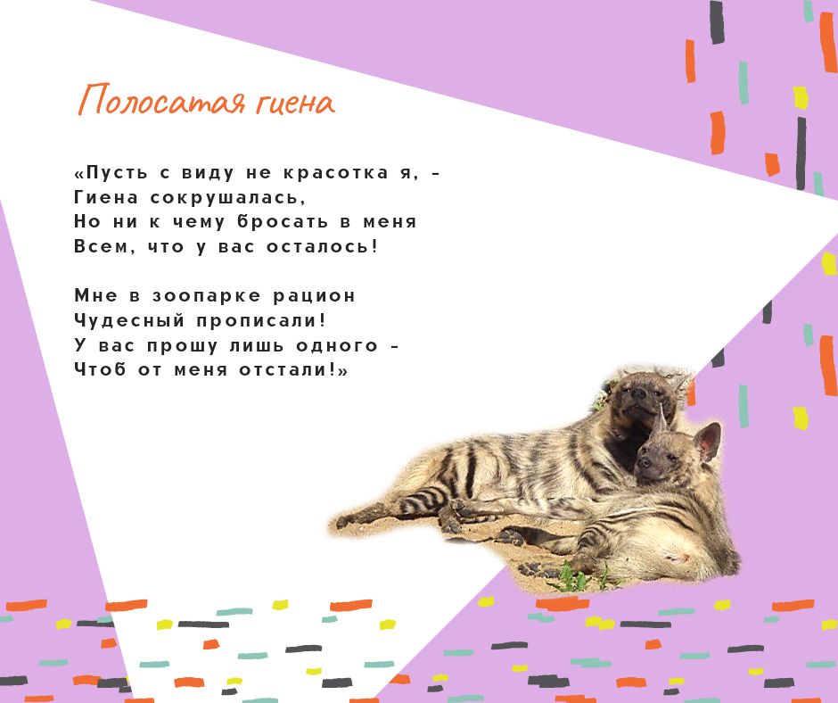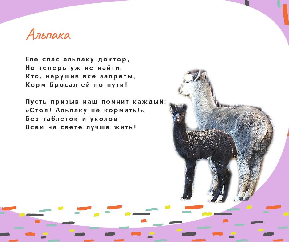 Я уже рассказывала, как нам всем понравились чудесные книги стихов для детей Надежды Барановой "Как-то раз один комарик..." и "Бум-бум, бум-бум - вот что мне пришло на ум!". Я решила поискать страницы автора в соцсетях и нашла у нее в Фейсбуке пост о том, что у просветительского проекта о вреде кормления животных в зоопарке "Любить - не значит кормить" есть вторая часть! Её нет ни на сайте Департамента культуры г.Москвы, ни в аккаунтах зоопарка, но я считаю, что вторая часть тоже совершенно замечательная, поэтому делюсь другими стихами проекта с вами, дорогие мои друзья по форуму. Я надеюсь, что Московский зоопарк разместит эти стихи Надежды Барановой у клеток с животными.