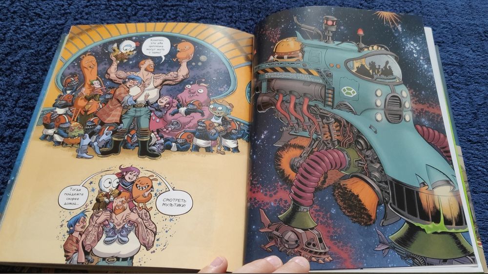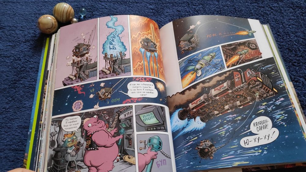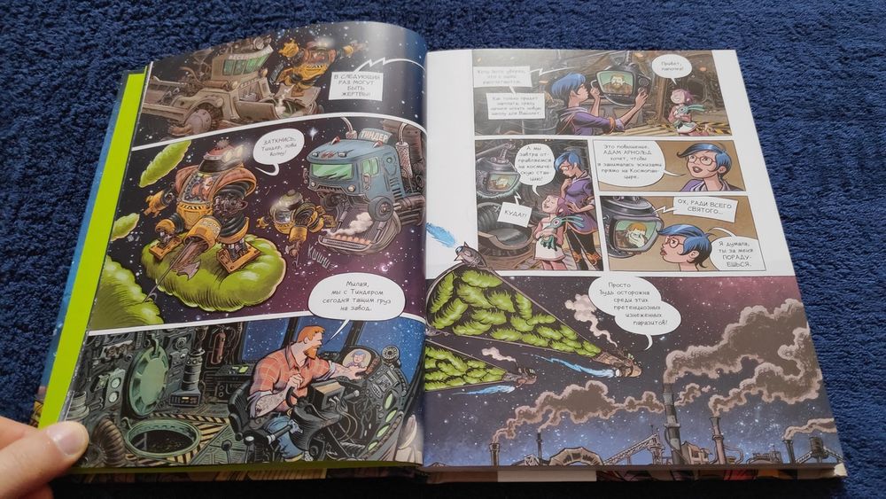 Сюжет довольно стремительно развивается, разветвляется, обрастает действующими лицами, меняющимися локациями. Отличная раскадровка и детальная прорисовка! Лично мне очень напоминает иллюстрации Мигунова, особенно всякие непонятные создания и технические агрегаты.