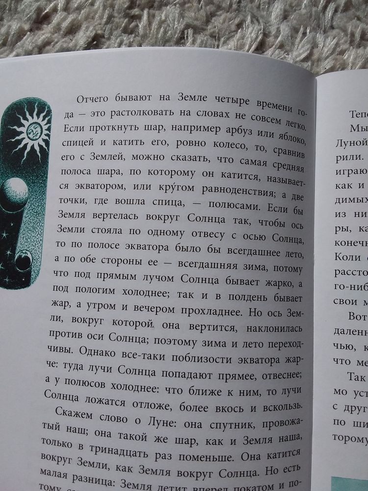 Язык ,конечно, немного непривычен. Будто с детём неразумным великовозрастным разговаривают, но это и понятно (но это больше чувствовалось в "познавательной" части, морские же рассказы читаются очень легко). Но что-то в этом есть!!! Покажу страницу, как Даль рассказывает о смене времен года.