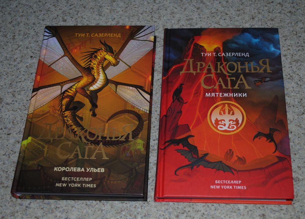 Нет фото, ибо сразу спрятала, старшему на день рождения еще одна часть Драконьей саги. Он видел и ждал только 2 книги, а вышло 3. И еще того же автора другую серию, "Зверинец", 3 книги. Надеюсь, тоже понравятся.