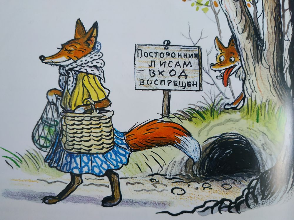 Нина, какие замечательные лисички! Кумушки-лисы с вязанием такие приветливые, так и хочется ха стол подсесть, лесные новости послушать )) Упитанная лиса без ботинок очень понравилась! У меня деть в последнее время очень любит рисовать таких упитанных зверушек )) А откуда рыжая лиса на фоне рыжих деревьев? С мальчиком на дереве это Булатов и Васильев?, какая сказка? "Посторонним лисам вход воспрещён" насмешил ))