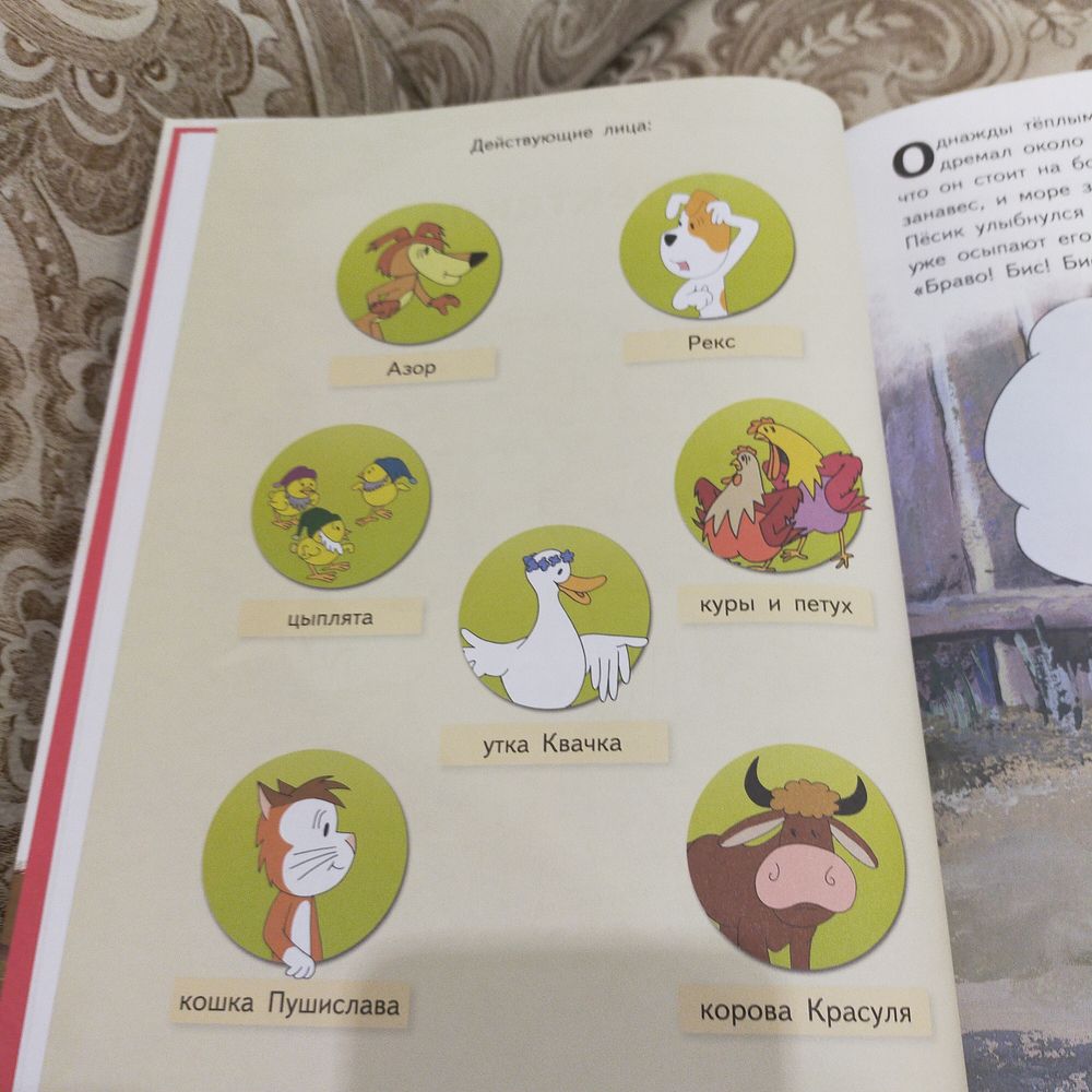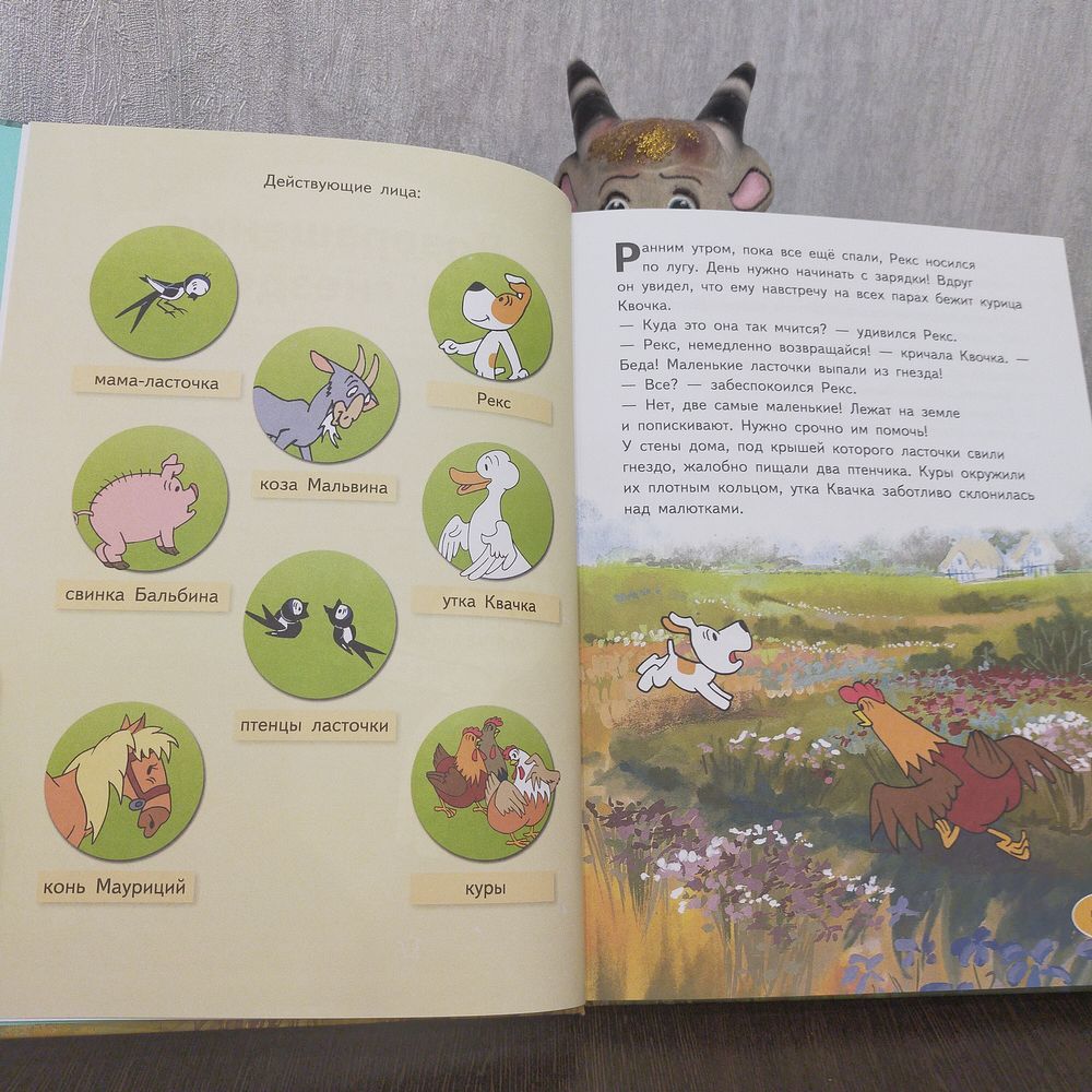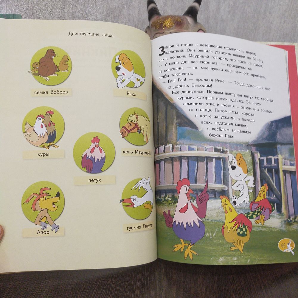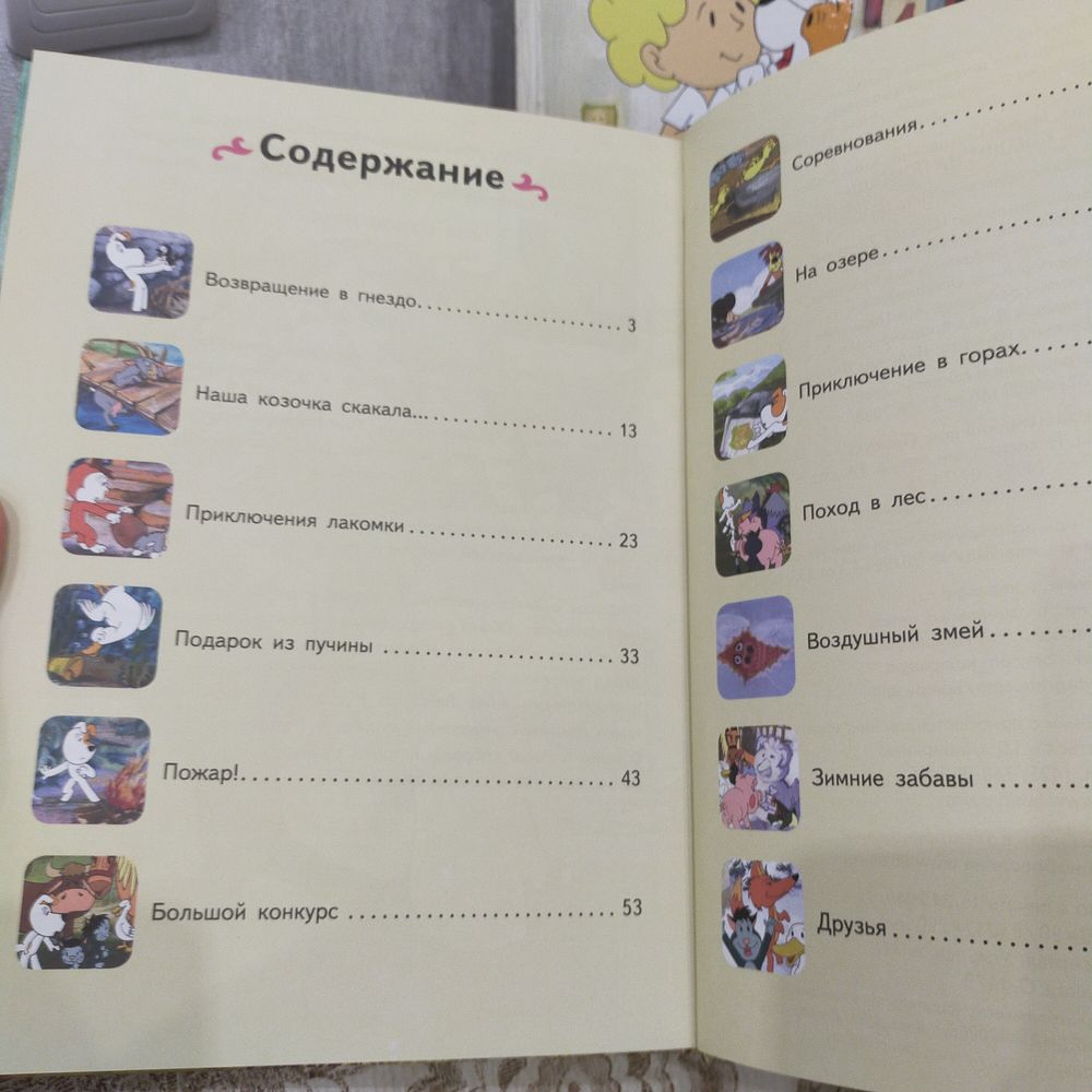 Конечно куплена из- за любви к мультфильму и воспоминаниях о детстве. Очень красочная. Для малыша удобное оглавление. В начале каждой главы фото всех персонажей. Мы их в книге искали и находили.