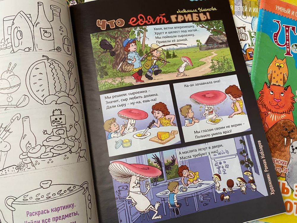 Веселые стихи и рассказы, игры, головоломки, раскраски, рецепты...И почитать, и поиграть, и что-то новое узнать. Как делают шоколад? О чём говорят картины Рене Магритта? Чем занимается обниматель панд? Как рисовать скетчи или медведей за 30 секунд?