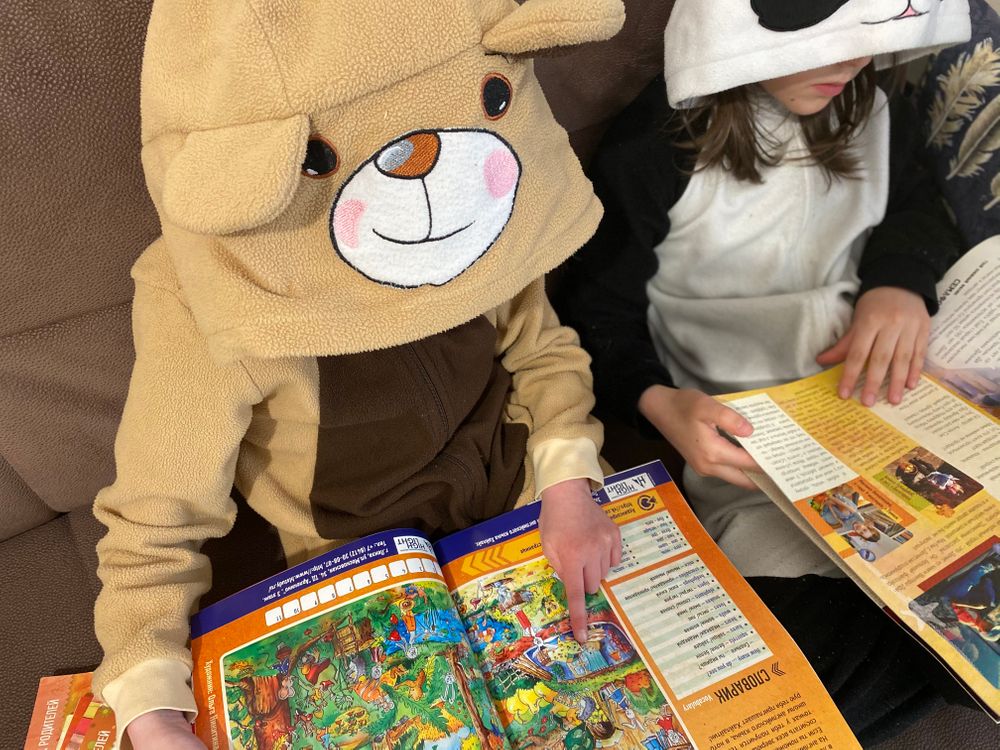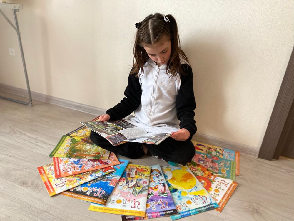 Алёнка в свои пять лет конечно чердобрячит больше за компанию - её пока привлекают комиксы, раскраски и всяческие занималки.