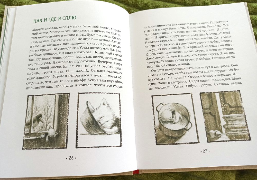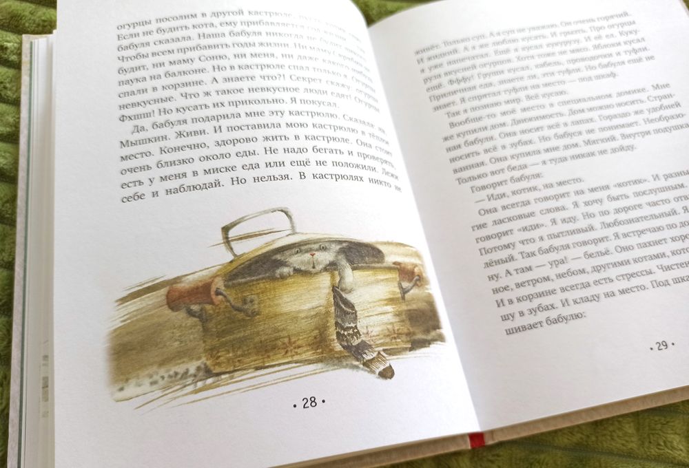 По этому, мне кажется, что лучше, чтобы читали родители, а то ребёнок прочитает и запомнит не правильно написанные слова. Но так-то книга не плохая. В ней рассказывается о котёнке, который ведёт свой дневник и у него это получается очень смешно, а ведёт он дневник в основном о своей жизни. Картинок много и они смешные. Книга тонкая и названия главы короткие и смешные, так что если дадите читать детям, мне кажется они её «проглотят». По-моему, книга развеселит даже самого серьёзного ребёнка, такого как я.)))