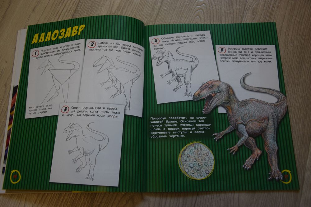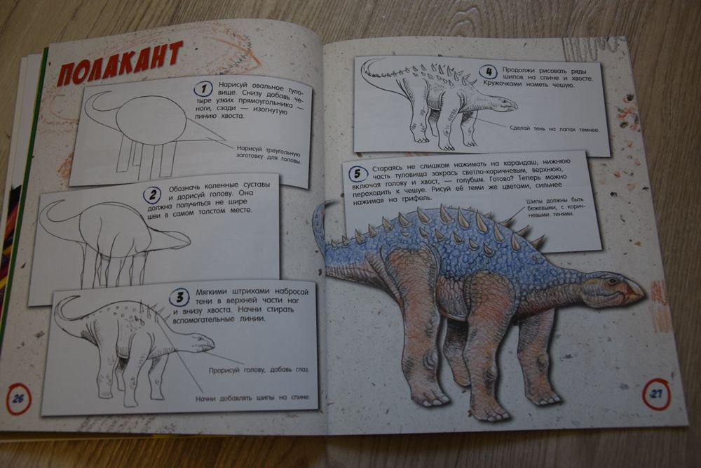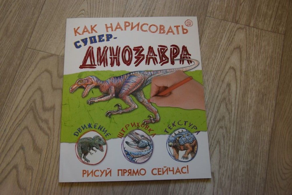 Креативная раскраска и прикольная книжечка "Как нарисовать динозавра" (У мелкого проявилась любовь к динозаврам после посещения Динопарка, маловат, конечно, но есть старший брат в помощь!)