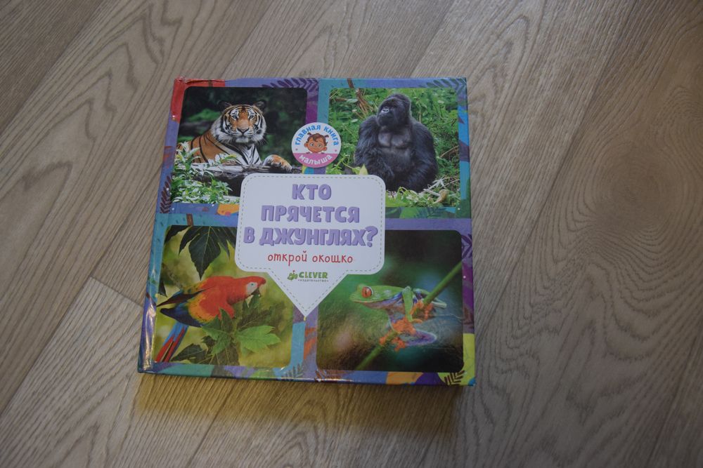 И подаренная книжечка от "Clever". Мелкий очень любит, очень красивая, яркая. Информацию он не любит особо читать, маловат ещё,а искать животных обожает!