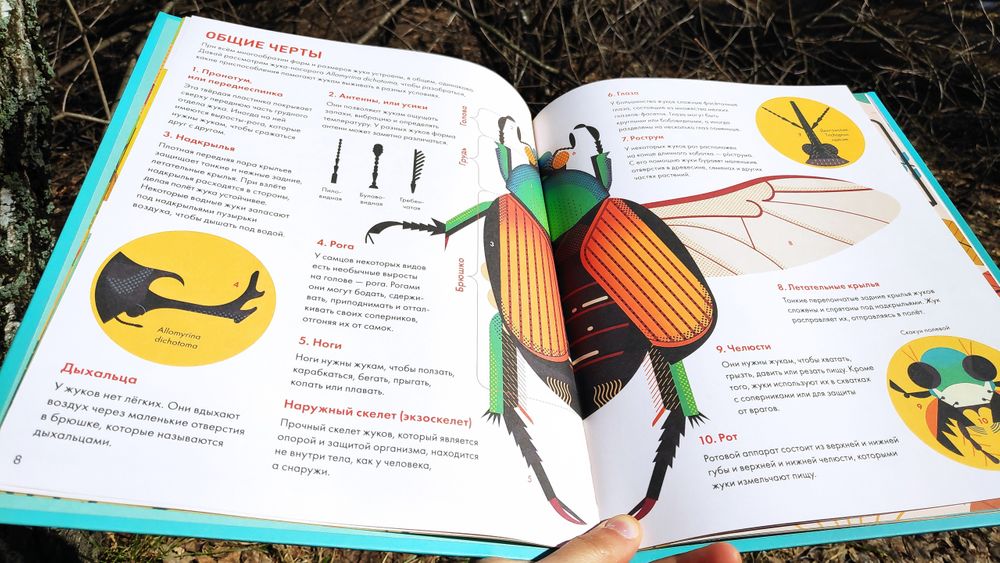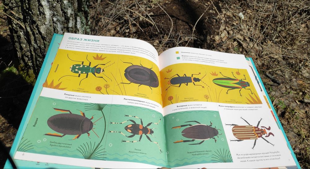 Разнообразие окраски насекомых всегда поражало, поэтому книги для детей о жуках не бывают дублями, в одних одно, в других другое, выстраивается более полная картина. Хотя дровосеки, божьи коровки и жуки-олени есть в каждой книге. Но тем приятнее узнавание )
