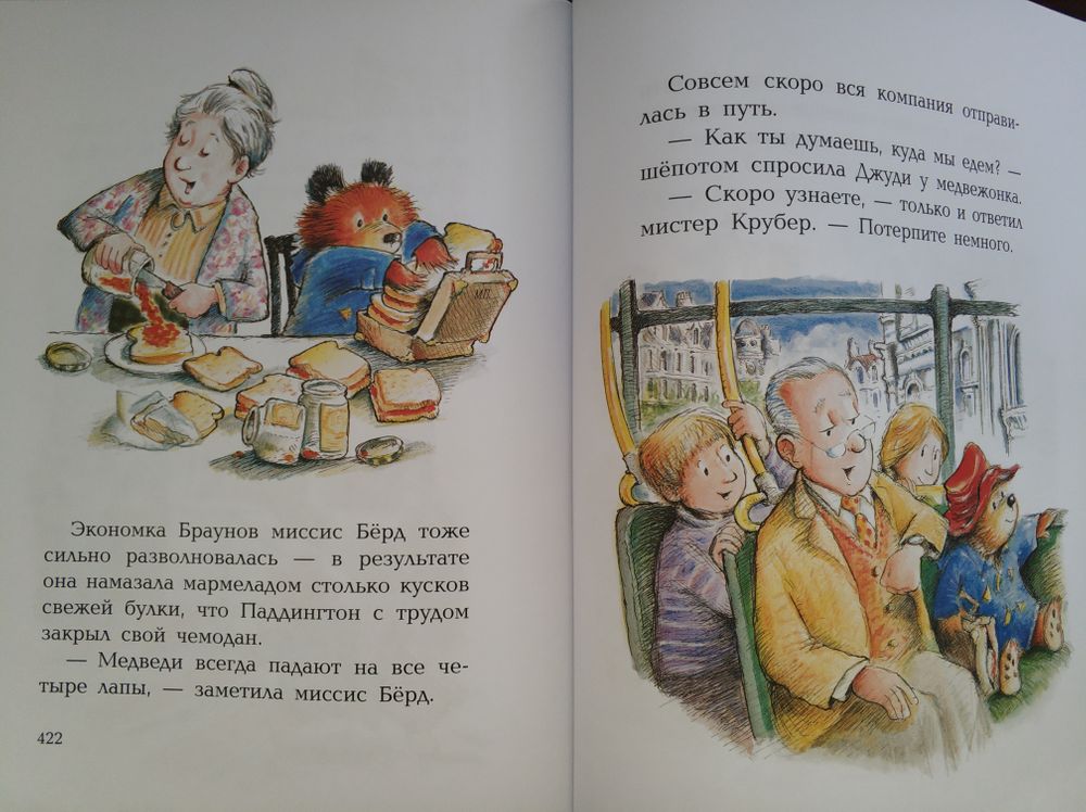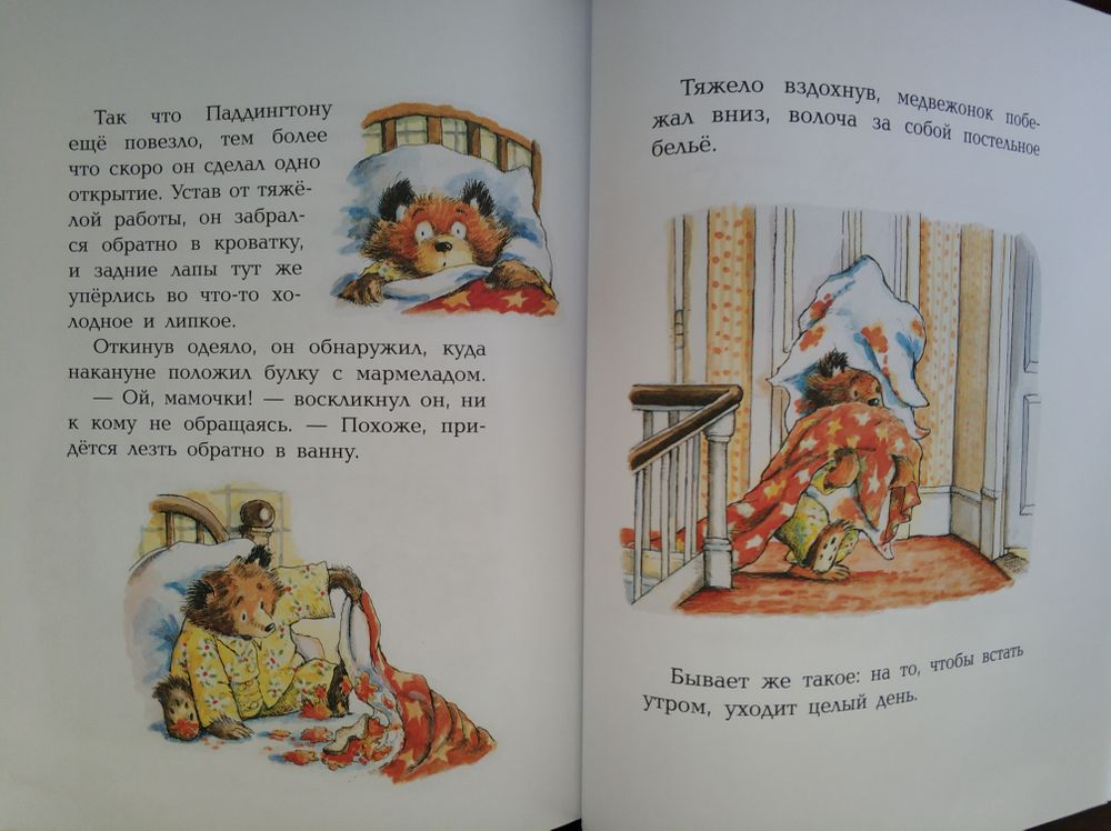 Медвежонок по имени Паддингтон - нелегальный иммигрант из Дремучего Перу, которого приютили в лондонской семье Браунов. Медвежонок постоянно попадает в какие-то забавные ситуации, то в цирке на трапецию полезет, спасать акробата, то невольно становится гидом-экскурсоводом, то пытается нарвать цветы для королевы в ее же саду, то провалится с чердака вниз и закроет дырку коллажом, назвав ее "прикрываж". При этом он постоянно жует булки с мармеладом, теряет их, делится ими. Такая милая и глупенькая мармеладная душа. Никакой особой поучительности, совсем немного познавательного, просто детские истории с тонким английским юмором.