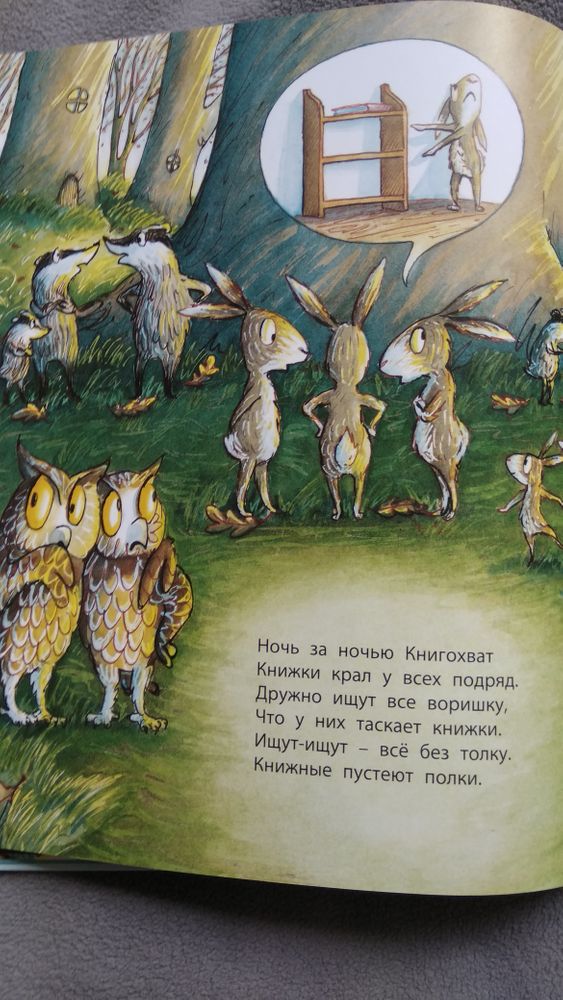 Ну как можно не простить эти глаза, тем более, что все вернулось на свое место. И теперь Книгохват тоже слушает сказки!