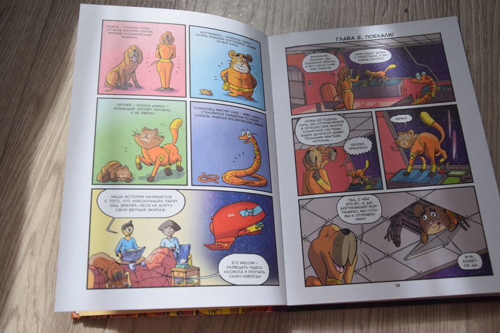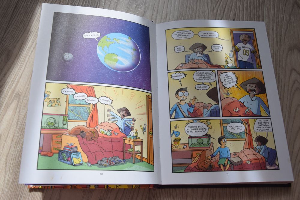Это вторая книга из серии. Я сама не читала, а Диме понравилась она не меньше, чем первая. Удивительный космос, приключения, опасности, и даже научные очерки лучших ученых нашего времени!