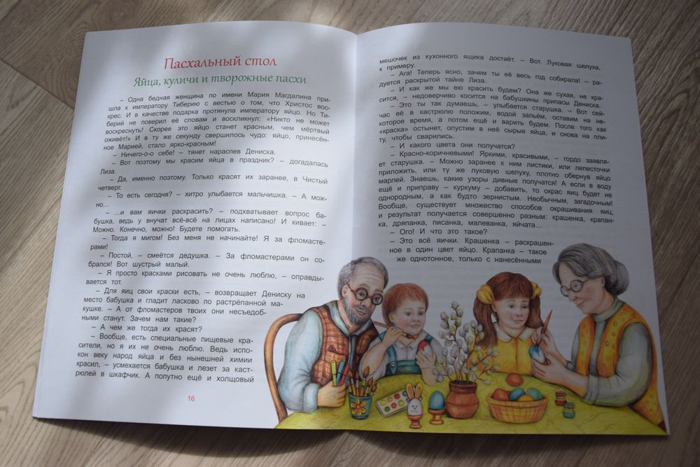 Иллюстраций почти нет, есть и простенькие рассказы, есть и посерьезнее чтение. Стихи, рассказы, отрывки из религиозных книг