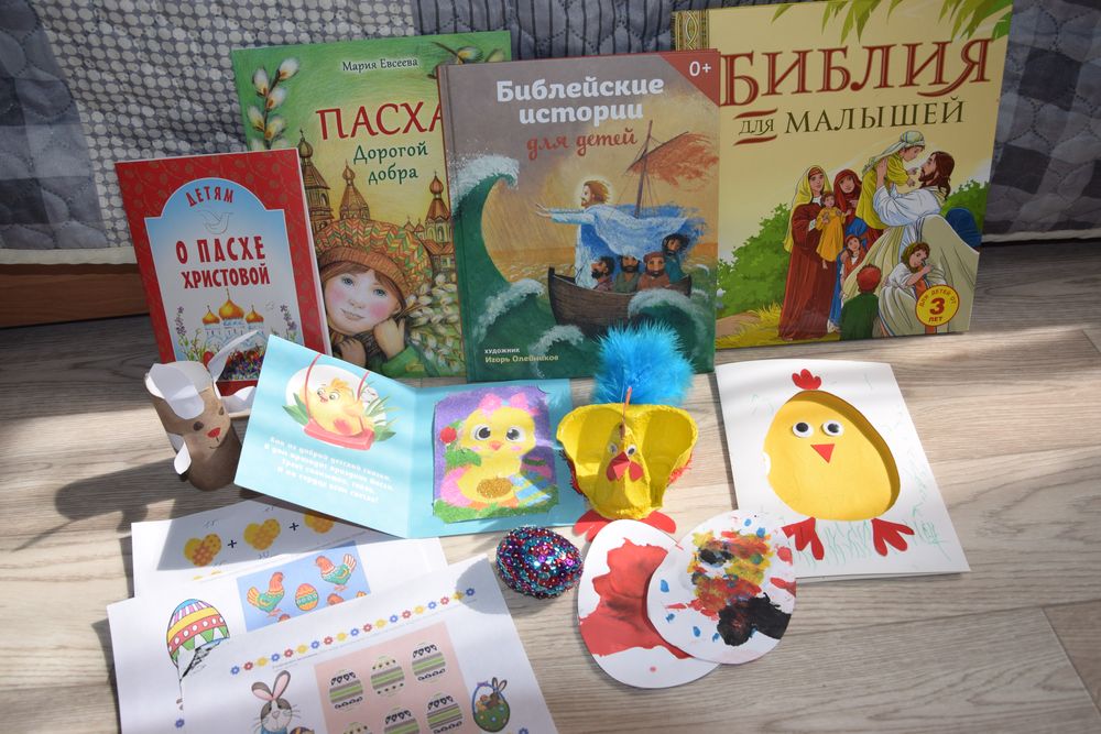 И совместное чтение в этом месяце у нас было на библейскую тему. Неделя объявлена Пасхальная. Делаем с детьми поделки, печем пасхальных кроликов, лепим-рисуем,разгадываем головоломки и кроссворды, красим яйца,и, конечно,читаем книги. Наша скромная библиотека.