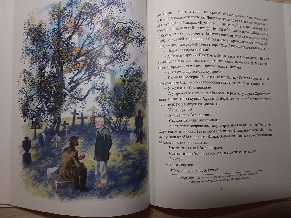 Я ж таки добралась до Записок во взрослом состоянии). Правда взяла я уже красивую книжечку от "Речи" с крупным шрифтом, со сносками ( вы знали, что подписать сказку - это подписать документ, подтверждающий сделку) , да с иллюстрациями Устинова (правда на 1 рассказ- по 1-2 иллюстрации), и мне даже стало жаль, что в данной книге всего 10 рассказов из цикла)). Есть ли описания природы? Конечно! Но сейчас это не раздражает. А читая "Бежин луг", перед глазами так и стоят эти мальчишки. Вот сидят они и рассказывают свои "страшилки"...