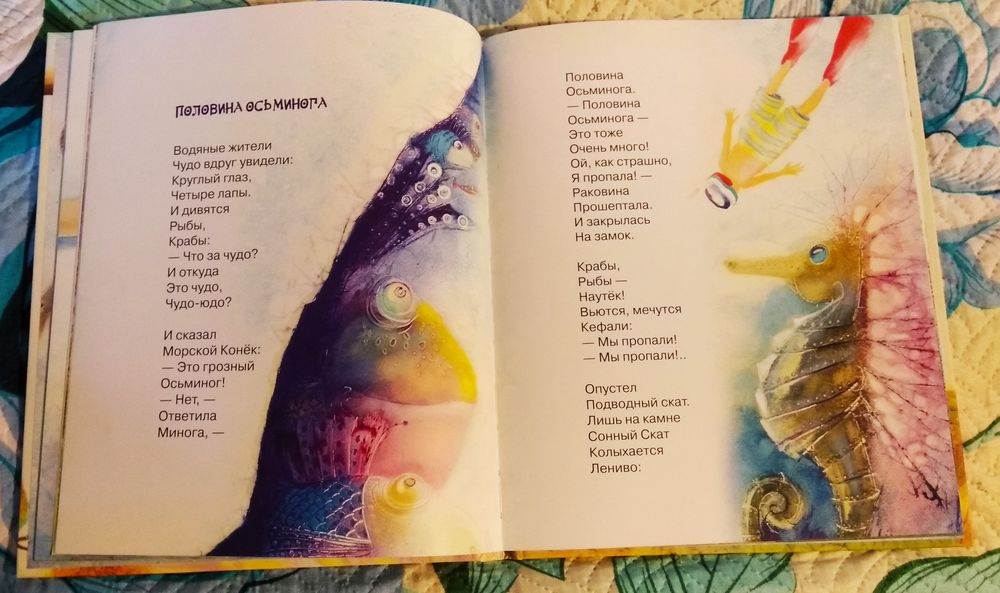 . Сапгир. Могу только петь дифирамбы! Хороша невозможно. Вначале читала больше себе, ребенок слушал - ну так и быть. А сейчас у него три любимых стихотворения и на ночь их обязательно! Смеянцы, Кто как спит и Половина Осьминога. А я кайфую и от рифмы, от иллюстрации и вообще от самой книги.