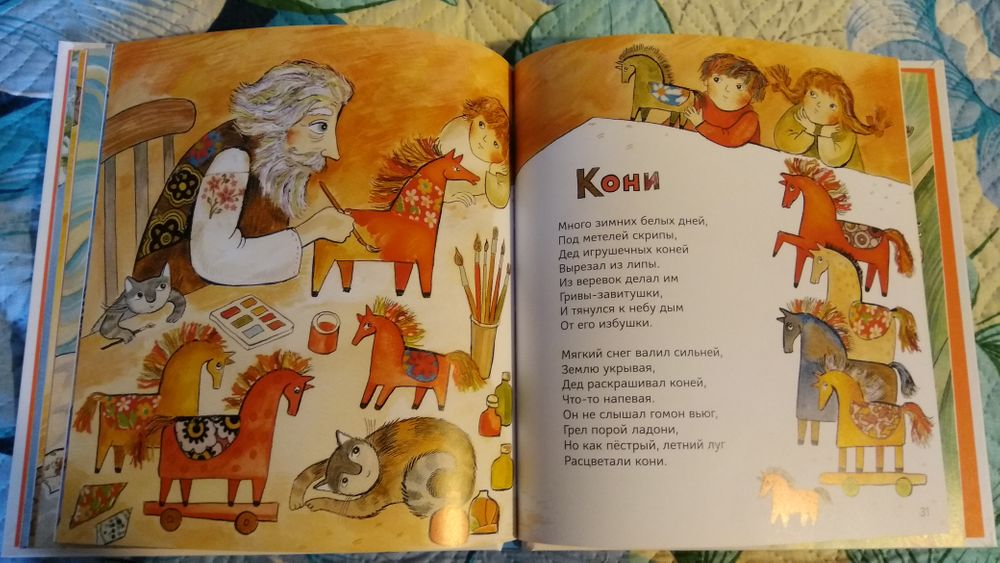 . Выучили про осьминога. Собирались ехать к бабушке на Пасху и я заболела, заражать маму не поехала, она и так только после больницы. А как мы прочитали стих про коней. Потом рассмотрели этих коняшек и прям ещё одна сказка с ребенком получилось.