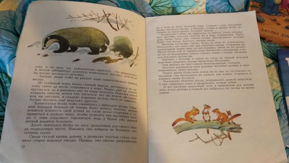 Впечатлила . Читали несколько раз, а потом просил выборочно, особенно глава где от куницы она убегает. Но на ходу я меняла текст, когда лиса за ёжиком охотилась. Очень прям красочно все, дочитала как она его в лужу кинула и понимаю, что дальше. Сын кричит - мама, ну что там, съела,да. Она его съела? Я придумала, что белка убежала по своим делам. Вот про бельчонка без подробностей прошло проще. Однозначно пока больше брать не буду, она хоть и понятная, но на более старший возраст.