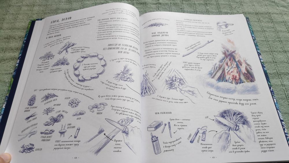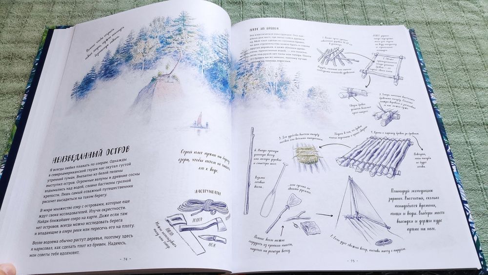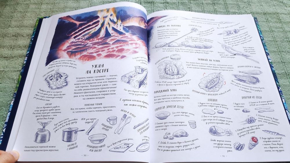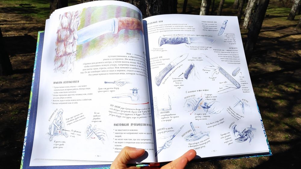 заставят улыбнуться опытных туристов-походников, исходивших и излазивших леса и горы Карелии, Урала, Сибири, Алтая и Дальнего Востока. Но даже просто чтение очень полезно для детей, так как некоторые вещи, связанные с выживанием в естественной природе, должны отложиться в памяти у каждого, и даже если ребенок не уйдет в многодневный поход, умение держать нож и пользоваться им, чтоб хотя бы выстругать зазубренную лохматую палочку для быстрого разведения костра, связать веревкой несколько шестов и сделать оплетку из травы никогда не будет лишним. И поможет интереснее провести каникулы даже в конце огорода или в дачной лесополосе.