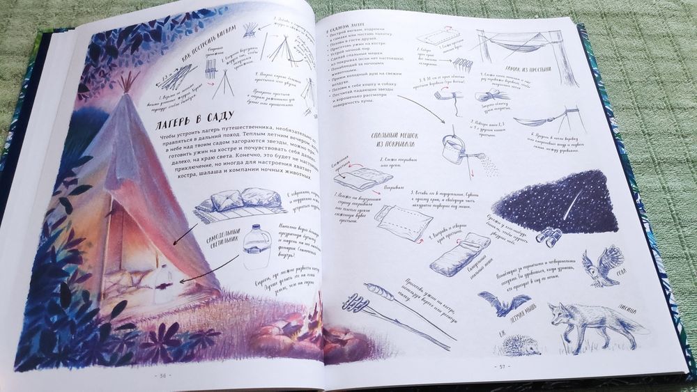 Отличное дополнение к показанной в прошлом году книжке-инструкции к вылазкам на природу! Тема животрепещущая в предвкушении предстоящих каникул! Особенно учитывая нынешнюю ситуацию с дальними путешествиями. Ведь очень многие проведут лето недалеко от насиженных мест, выбираясь в деревню, на дачу и другие не очень людные места и заведения внутри страны.
