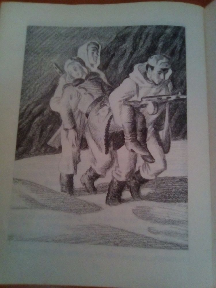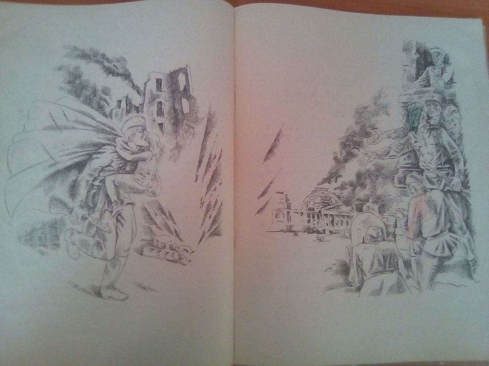 Ю.Левин "Комбат". Книжка нашего местного издательства, посвящена 40-летию Победы и рассказывает о взятии Рейхстага, о героизме воинов-уральцев. Черно-белые рисунки в то время, видимо, часто воспринимались как раскраска, поэтому почти на всех рисунках есть цветные почеркушки: