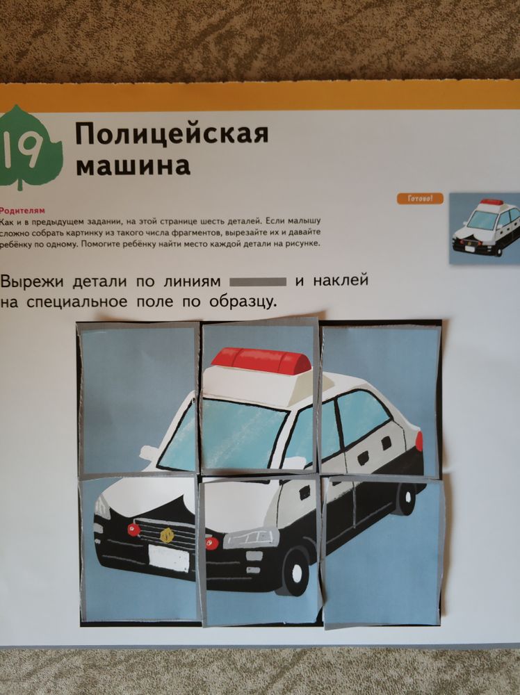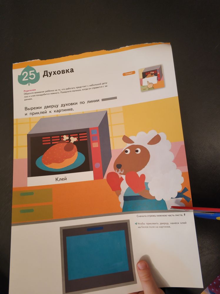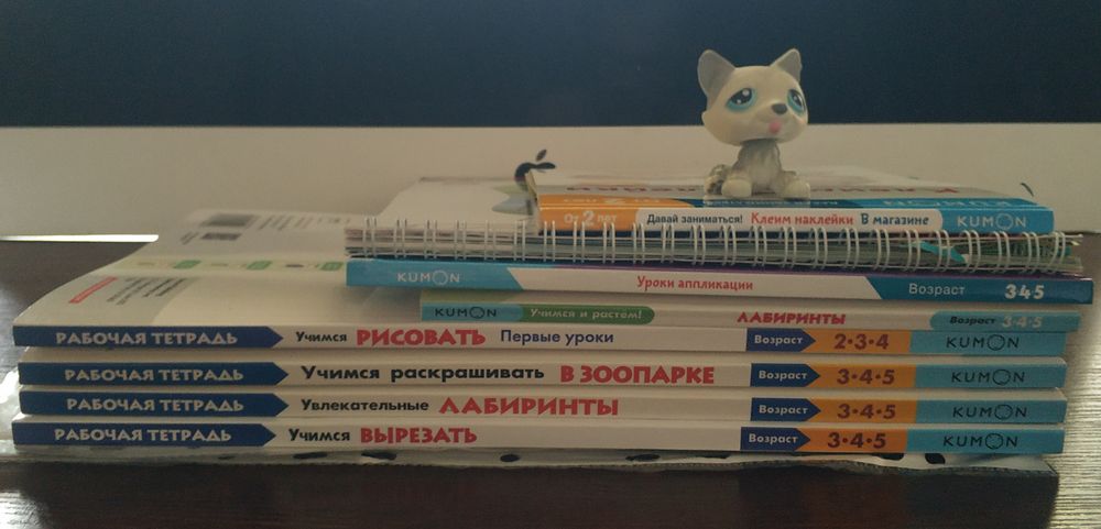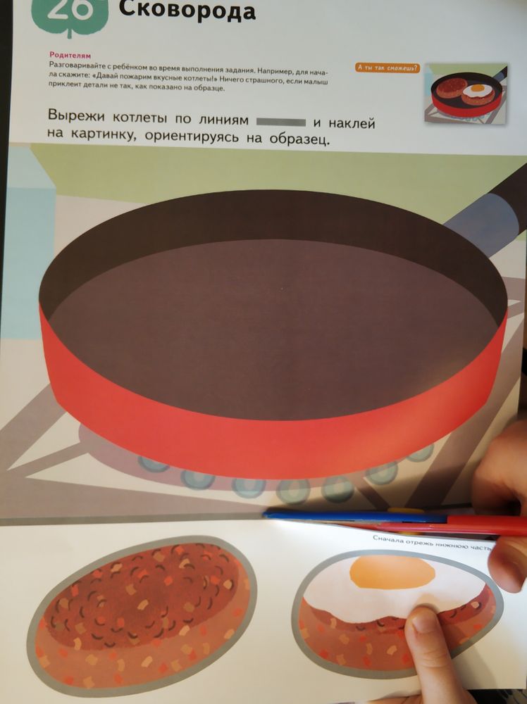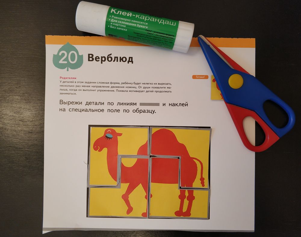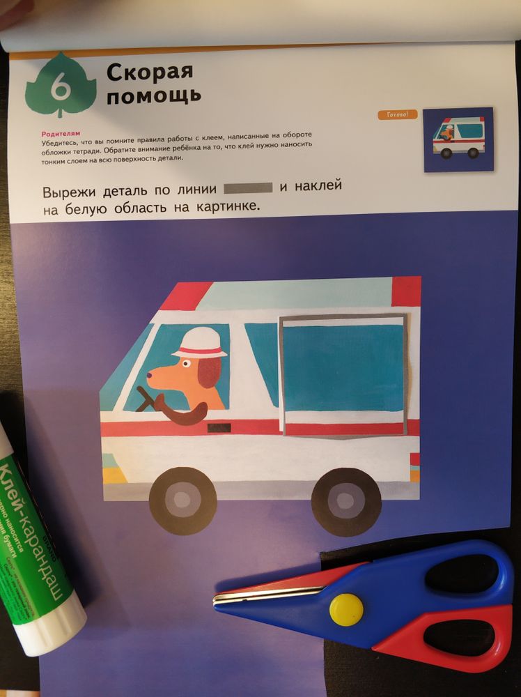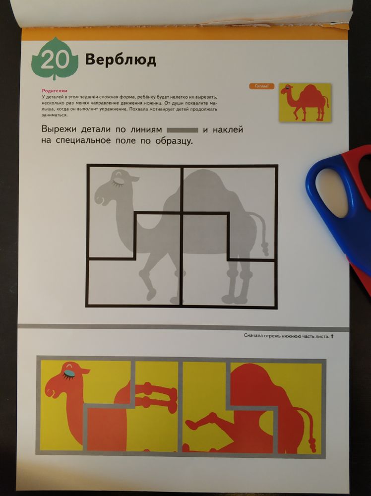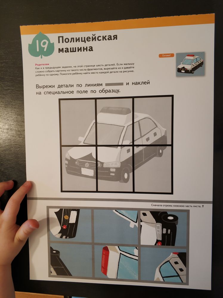 Усложнение заданий не так продумано, как у Кумон, где навык оттачивается на нескольких тетрадях, тут же усложнение идет достаточно быстро. Под конец склеивали поделки вдвоем, без помощи Полина не справилась бы. Тем не менее рекомендую, поклеить симпатичные поделки вместе тоже здорово)