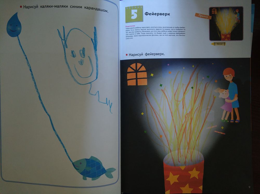 Окончательными результатами пока не поделюсь, Полина дошла до середины пособия, оно ей очень сильно нравится, просит начинать занятия именно с него. В следующий раз напишу, как такое обучение рисованию сработало)