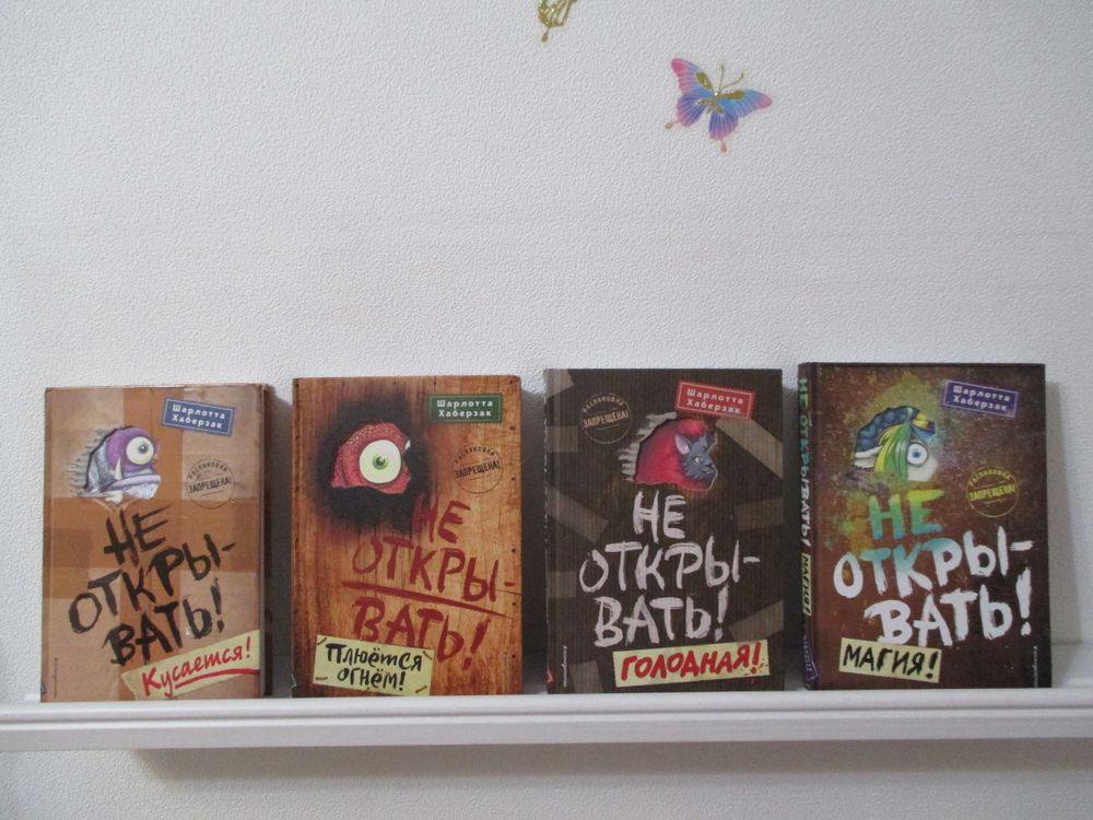 Так же прочла Агатка серию книг "Не открывать!", мы купили почти все книги, кроме Липко, т.к. по отзывам она самая неинтересная. Серия забавная, очень необычное оформление, у каждой свой дизайн, а у Магии, вообще блестки)