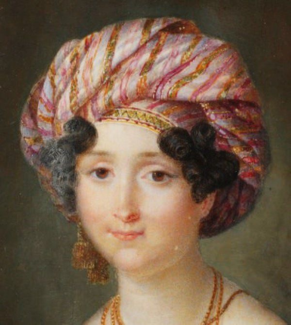 Наряду со шляпами в это же время модницы стали носить на голове персидские тюрбаны.