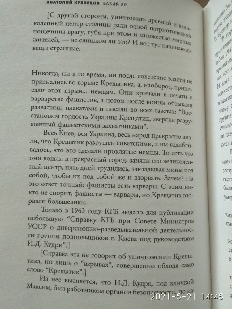 И да, я ему поверила. И да, на свою дурную голову, сделала этот отзыв. Да, я верю, что там замучали и расстреляли немцы сотни тысяч человек, да, я верю, что не все любили советскую власть. Да, я верю, что предавали и ели людей. И да, я поверила, что Крещатик, занятый немцами взорвали наши. Но где здесь слова, что фашисты ничего плохого не сделали?
