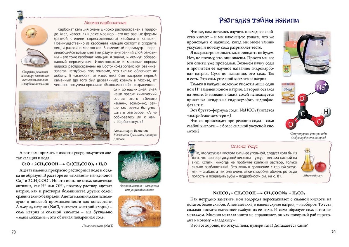 Очередная книга серии "Русская школа" адресована в первую очередь тем, кто начинает изучать химию. Однако и те, кто уже знаком с основами этой науки, найдут для себя в книге немало нового. Доступно и понятно объясняя сложные законы природы (в том числе за счет наглядных схем), автор предлагает провести ряд интересных опытов, раскрывает химическую суть многих бытовых явлений: от отложения накипи в чайнике до выпекания пирогов и застывания краски. Большое внимание уделено тому, как важно знание химии для охраны окружающей среды.