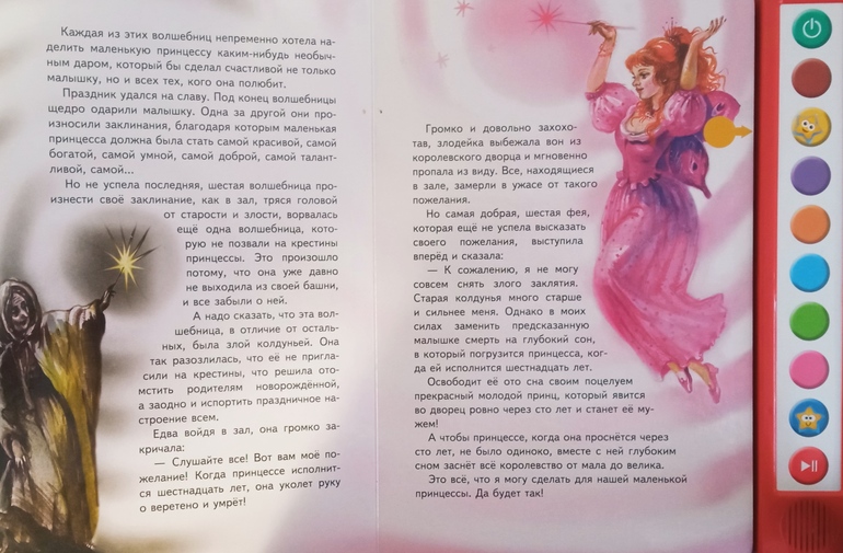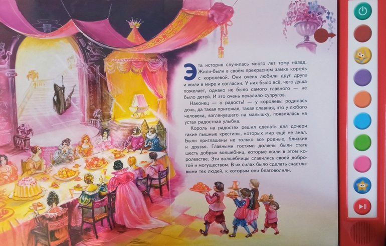 Честно сказать, к музыкальным книгам отношусь осторожно - качество воспроизведения, зачастую, оставляет желать лучшего, звук то слишком громкий, то чересчур тихий. Но в этом издании всё гармонично. Текст читает профессиональный актёр с приятным задушевным голосом. Сказка сопровождается музыкой Чайковского из балета "Спящая красавица'