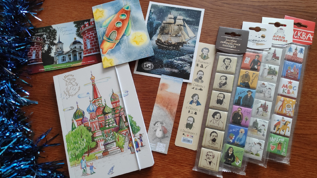 Оксаночка! Огромное спасибище за все-все-все!!! Белоснежные листы блокнота с собором Василия Блаженного на обложке достойны только самых мудрых мыслей, на написание которых должны вдохновить шоколадные квадратики с портретами великих писателей. А заодно подсластить творческие муки и пригласить на экскурсию по Москве - сладкие котики манят и зовут вперед ))