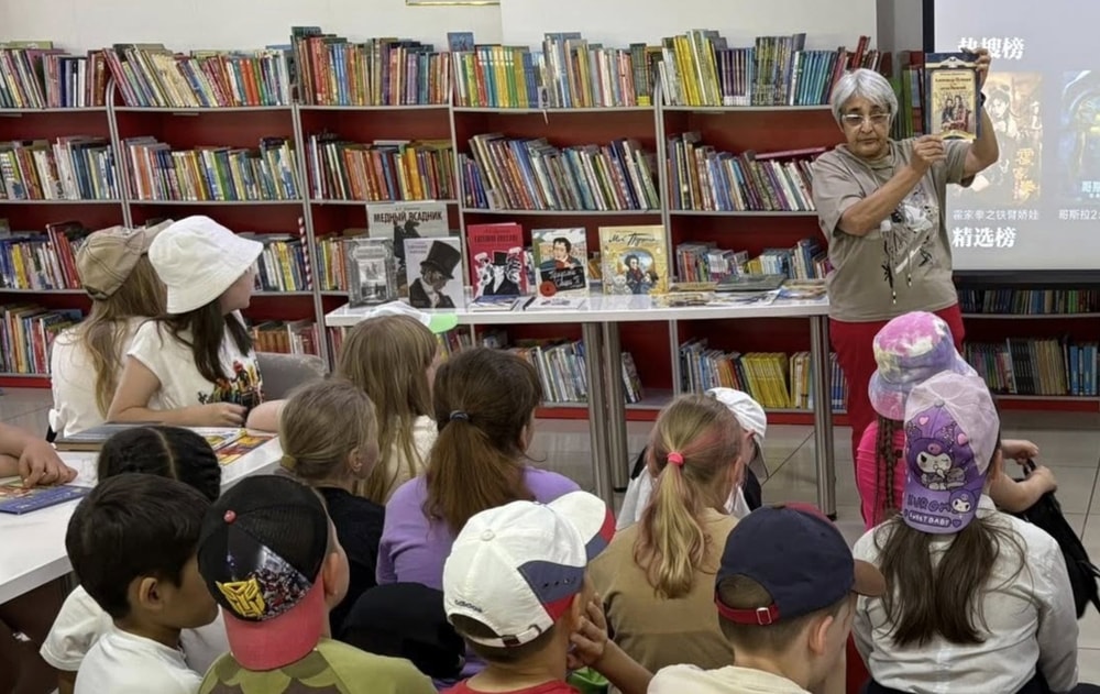 Сейчас основные наши посетители библиотеки - это начальная школа - дети из школьных лагерей. С ними, конечно, говорим совсем о другом, хотя книги стоят и лежат перед детьми , чтоб видели не только сказки.