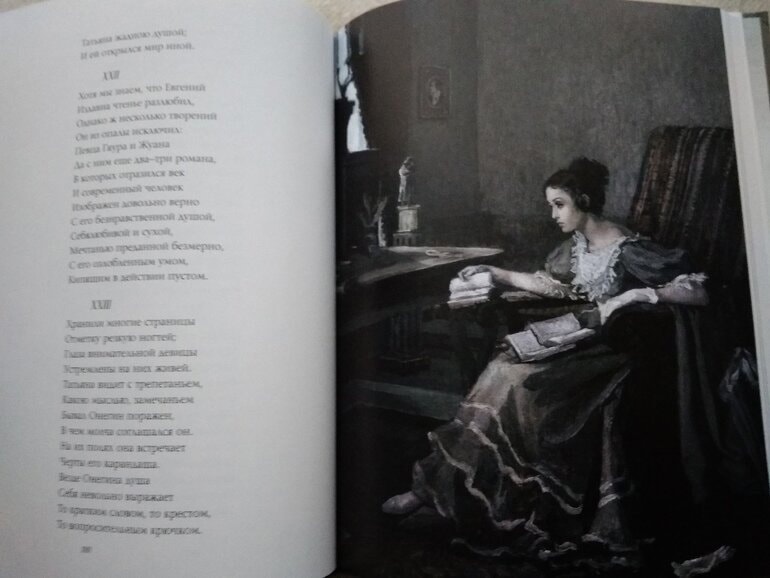 Да, как и положено в моем представлении, он стоял и лежал рядом с графическим путеводителем Алексея Олейникова, ведь именно в этой связке по моему глубокому убеждению, роман может заинтересовать школьника и будет прочитан, если уж не с восторгом, то, по крайней мере с любопытством. И, если в предстоящем году в программе по литературе стоит "Евгений Онегин", на месте каждого родителя я купила бы своему школьнику две эти книги. Ведь роман значится в обязательном списке летнего чтения. И у такого издания с такими потрясающими иллюстрациями куда больше шансов быть прочитанным и понятым с помощью путеводителя, хотя рисунки в нем сильно уступают по части художественности...