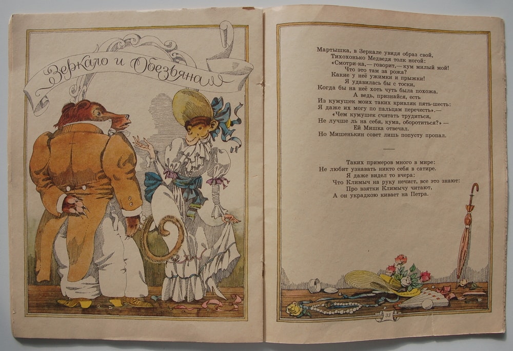 Довольно полный сборник басен Крылова с иллюстрациями Гороховского.