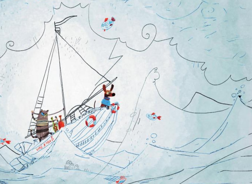 Маленького пёсика, барахтающегося в водах непонятного моря, поднимает на борт кошачий экипаж кораблика "Снежный", которым командует старый морской волк Разноглазый.