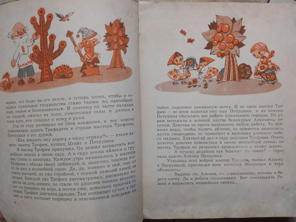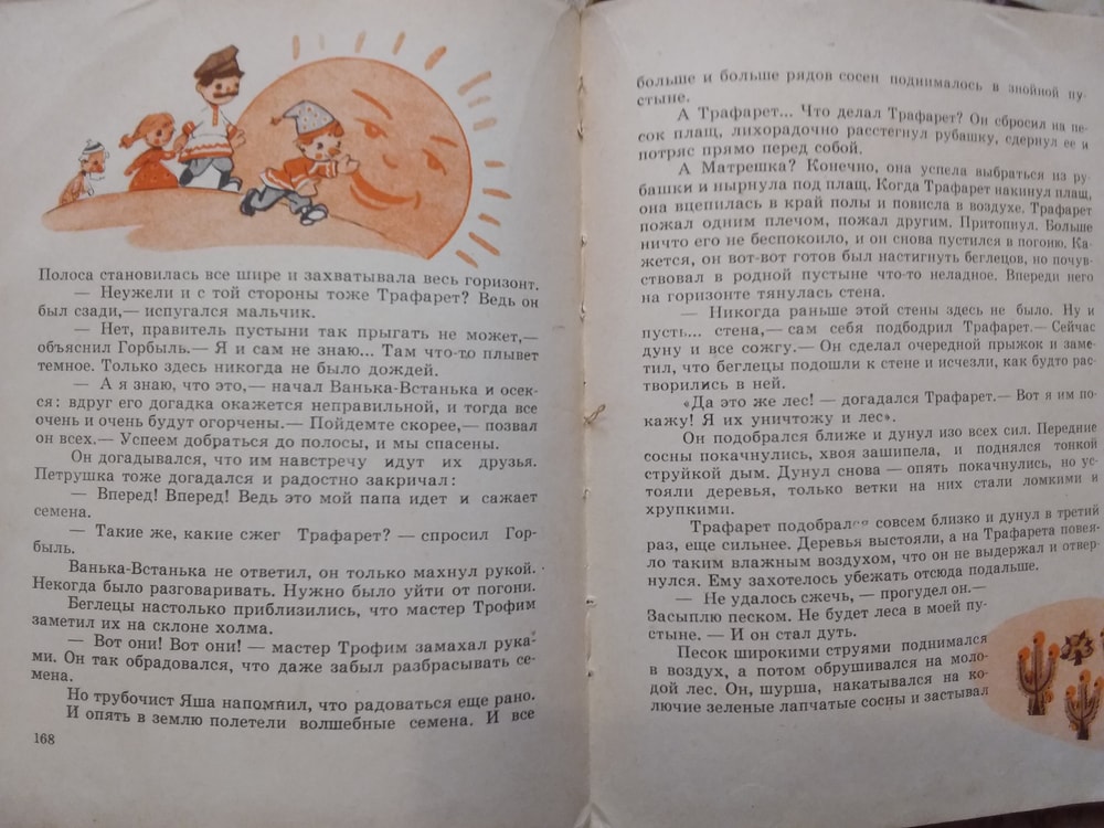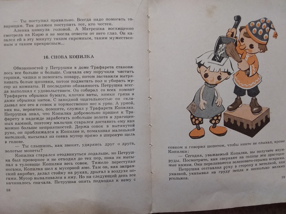Петрушка в стране Трафарета. Последний раз я читала её, когда родилась дочка и я забрала её к нам в семью. История, как Петушка, спасая семена, попал в страну страшного буржуя Трафарета, который воду выдавал населению малыми дозами, но Петрушка всех спас )). Это я так помню.