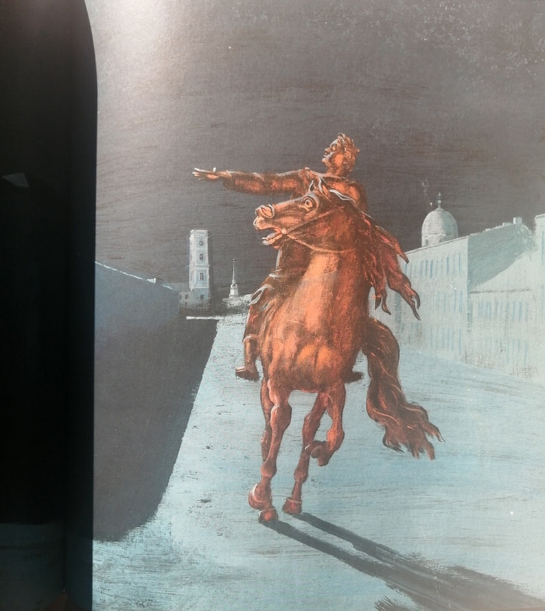 Первая книга, которая мне сразу вспомнилась при объявлении темы флешмоба, – «Медный всадник» с иллюстрациями Михаила Бычкова