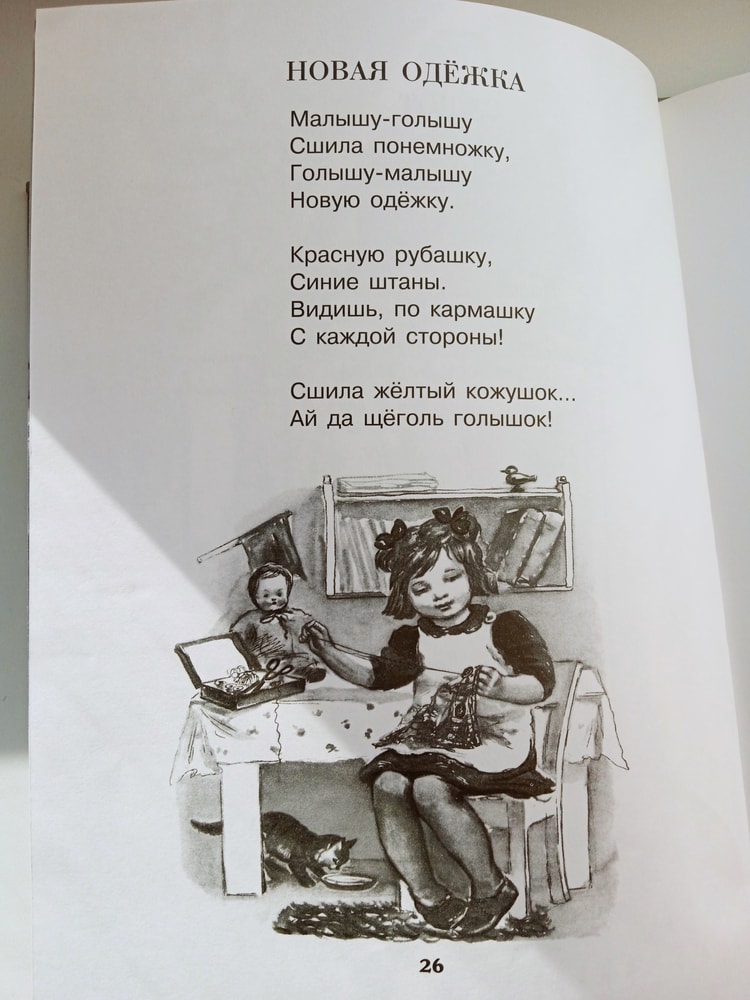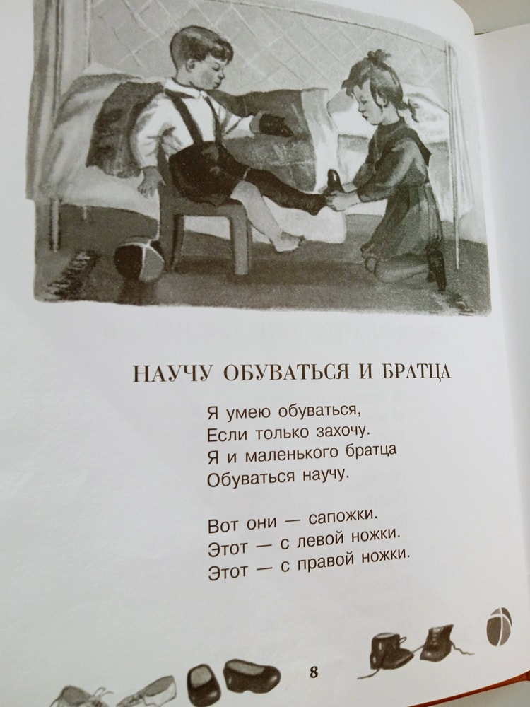 Мне очень нравятся такие ретро-иллюстрации. Где в комнатах много воздуха и света, у ребенка не сотни игрушек, а немного, но все они любимые. И сами стихи знакомые-знакомые, те самые, которые мы учили в детском саду, которые читала мне мама или которые читала и перечитывала я сама. Жаль, что внутри иллюстрации не цветные, но и в черно-белом варианте они передают ту атмосферу советского детства: