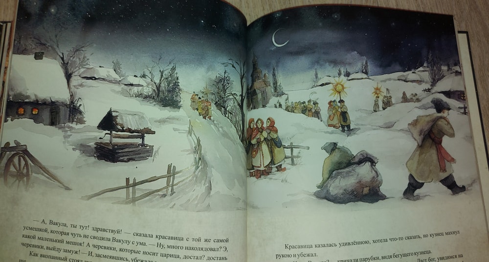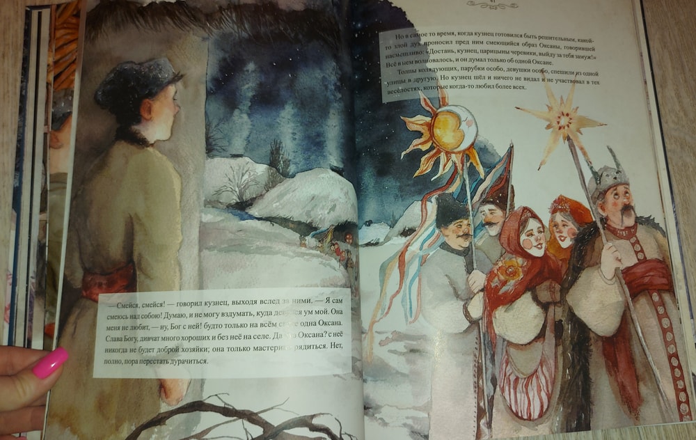 Это долгожданная Ночь перед Рождеством с иллюстрациями любимой Оксаны Викторовой.Все ее книги самоиздат,поэтому Ночь перед Рождеством и Майская ночь практически отсутствовали на популярных маркетплейсах,об иллюстраторе было мало что известно,да и книги печатались маленькими тиражами
