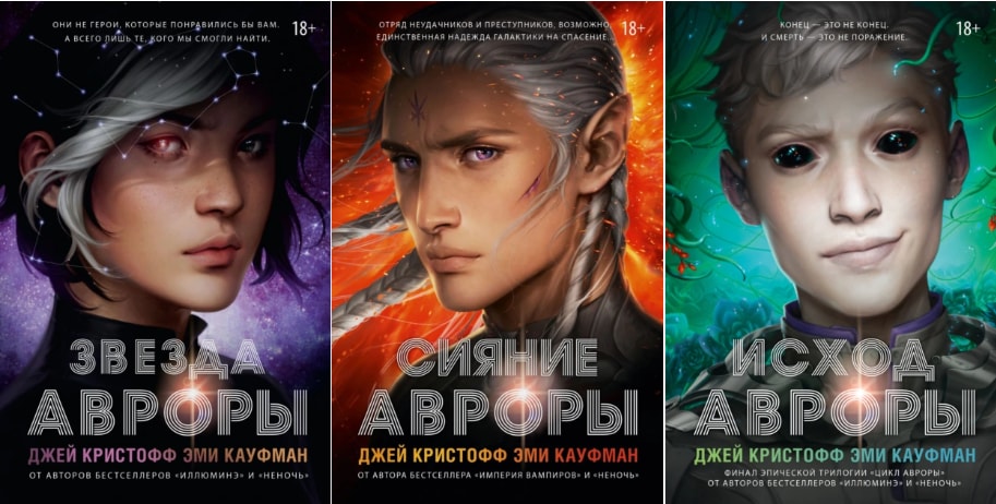 Перечитала первую часть трилогии, дочитала наконец-то 2 остальные. Космическая фантастика о группе юношей и девушек, принадлежащих к разным космическим расам, которые, преследуемые всеми, кем только можно, тем не менее спасают мир. Первая часть самая приключенческая, вторая - более психологичная, но и приключений здесь тоже хоть отбавляй, третья - самая слабая, финал устроил не вполне, хотя авторы очень старались.